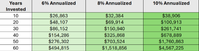 While $15,000 is a lot of money for a child, it isn’t going to change their lives . . . yet. However, compounded at 8% interest for 60 years, it would grow to more than 1.5 million dollars. More realistically, they may hold the stock for 10, 20, or 30 years, which would still give them quite a little nest egg.