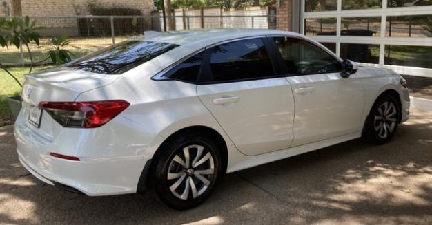 Using this list, I narrowed my choices to 3 cars. I started off looking for used examples, but unfortunately, there just wasn’t anything available. The main sticking point was that most cars have black leather seats. However, ventilated seats are generally only on the top trim level, which was then over my self-imposed budget. So, for the first time, I started looking at new vehicles and found a 2023 Honda Civic that fit everything on my list. It is the base model with no upgrades or options except a “special color” (white). The only extras were those the dealership added automatically to make more money (lojack and undercoating).