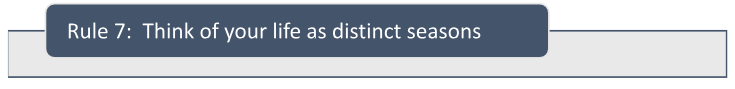 Mentally divide the rest of your life into “time buckets,” or 5 to 10-year tranches. What do you want to do during each bucket? Perkins explains how we each die many deaths: the college student dies, the single person dies, the parent with children living at home dies, etc. You can’t go back once you pass these milestones, so it is like that part of you dies. What experiences does that part of you want to have while it lives? This is a proactive way to ensure you are optimizing each season of your life.