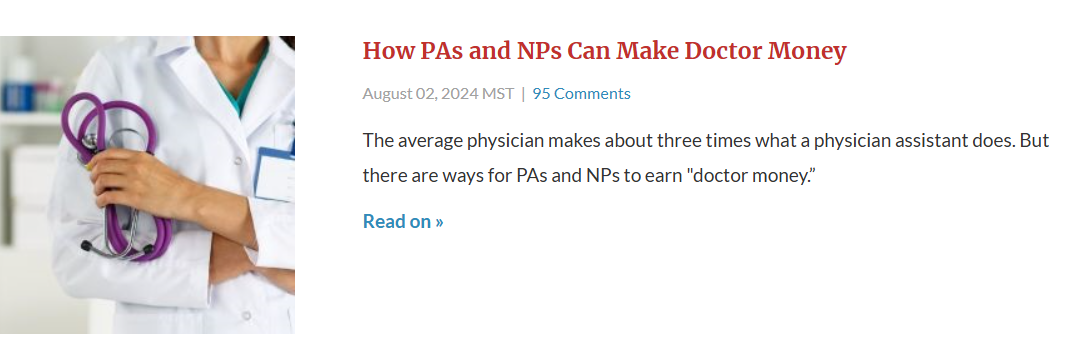 When I finished writing my article, “How PAs and NPs Can Make Doctor Money,” for the White Coat Investor, I knew some of the topics might spark strong reactions, particularly from doctors. My intention was to help APPs navigate their careers more effectively, focusing on financial independence and professional growth—not to create controversy. While I expected the title to turn heads, I hoped the content would clarify that it wasn’t about achieving a mythical “doctor money” figure or demanding higher pay for our work. Instead, it was about maximizing our existing income and leveraging entrepreneurialism to create financial success as APPs.